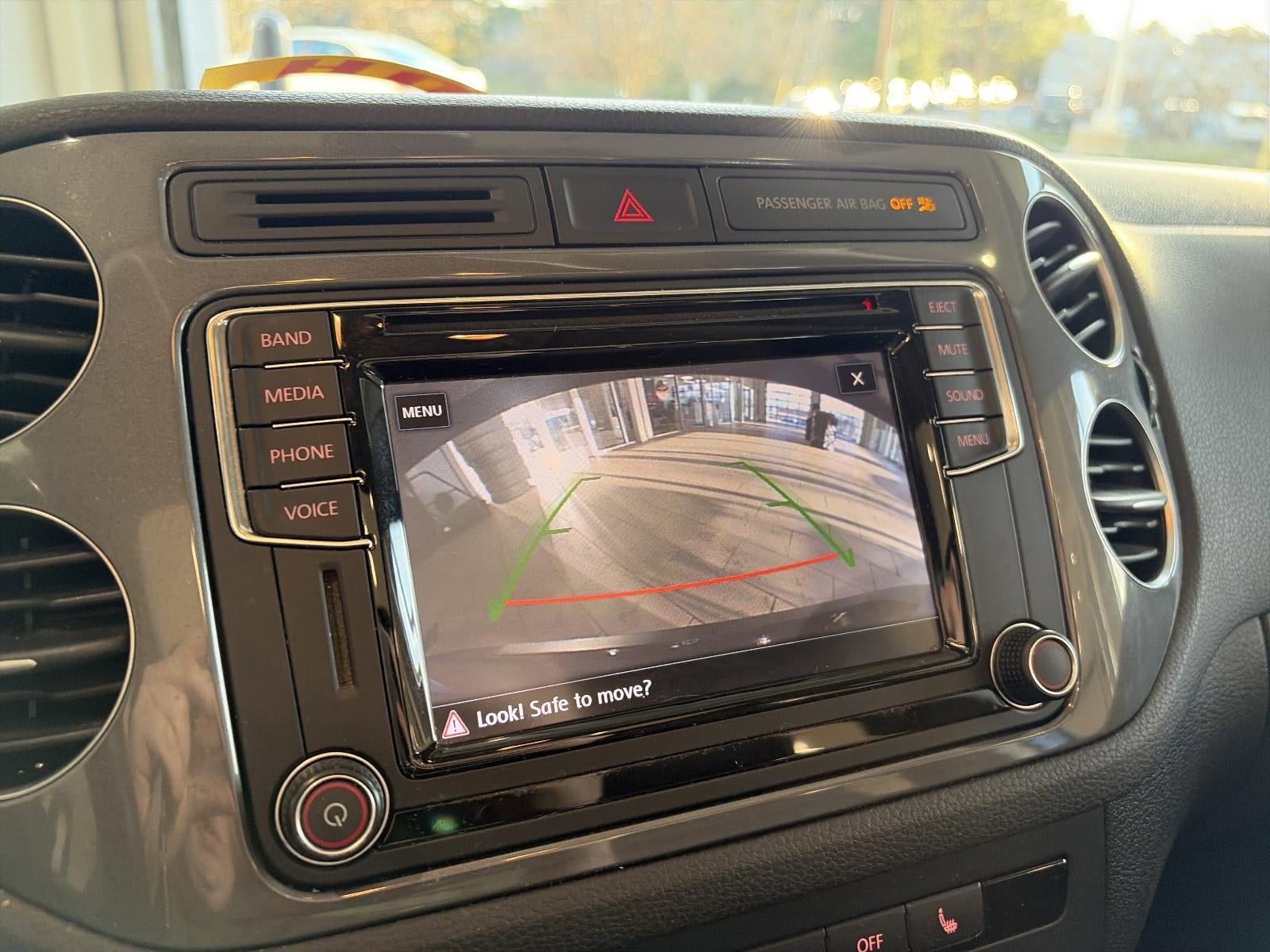 Inside, the Tiguan's V-Tex Leatherette Seating Surfaces and heated front seats provide exceptional comfort and style. The panoramic power moonroof allows you to enjoy the great outdoors, while the Rear Parking Camera and Blind Spot Monitoring system enhance your overall driving confidence.