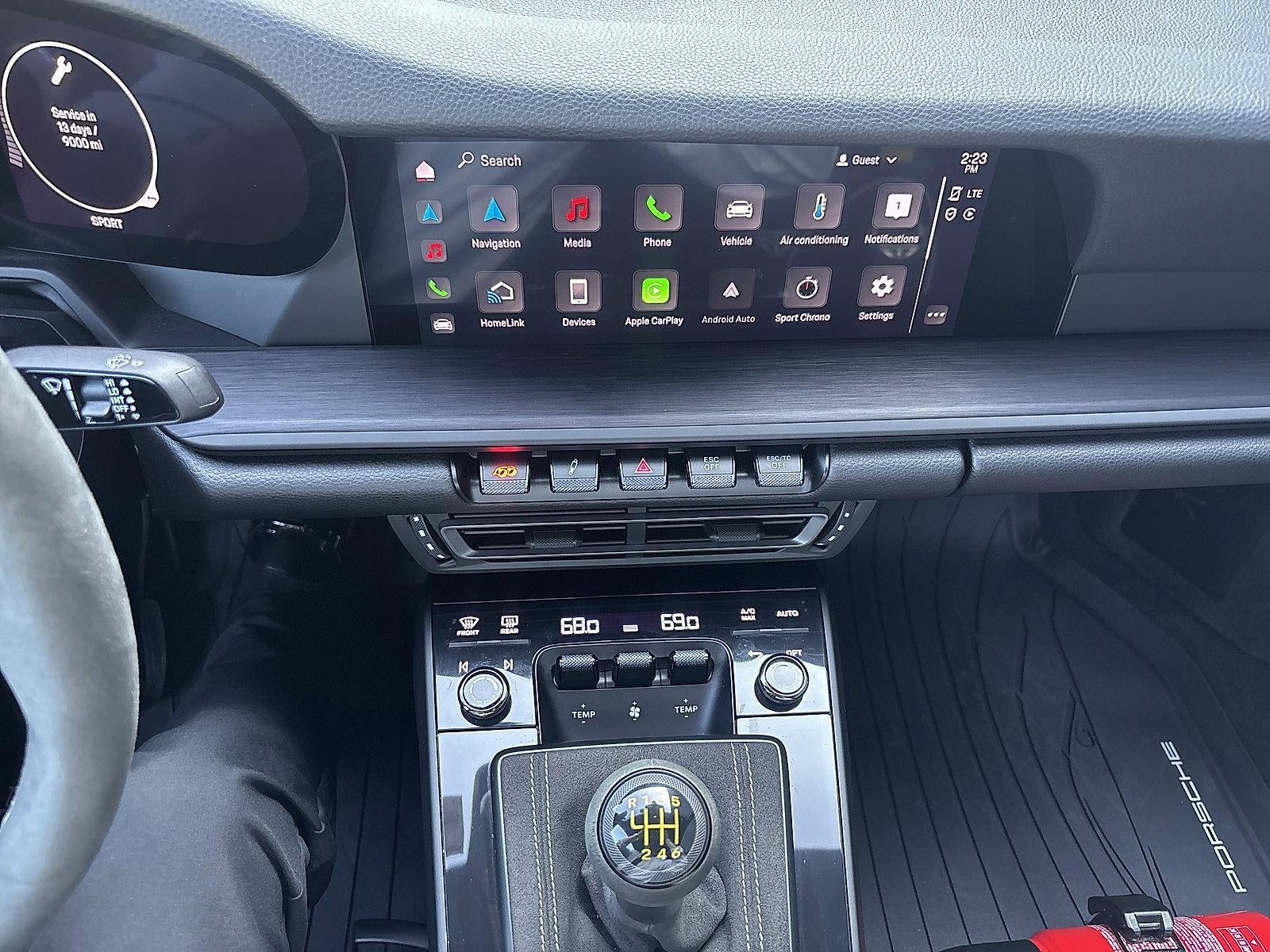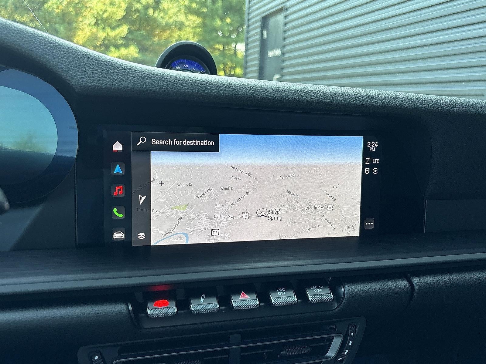 - Radio: Porsche Communication Management (PCM) -inc: online navigation module, Connect Plus (wireless Apple CarPlay and wired Android Auto, LTE communication module, wireless internet access and numerous Porsche Connect Services), SiriusXM w/360L (3-month trial), integration of Apple Music and Apple Podcasts, voice pilot w/natural language understanding and activation via Hey Porsche, navigation plus w/real time traffic Information and online map update, sound package plus (analog sound system, 8 loudspeakers, 150-watt total output w/integral amplifier and digital signal processing) and voice control