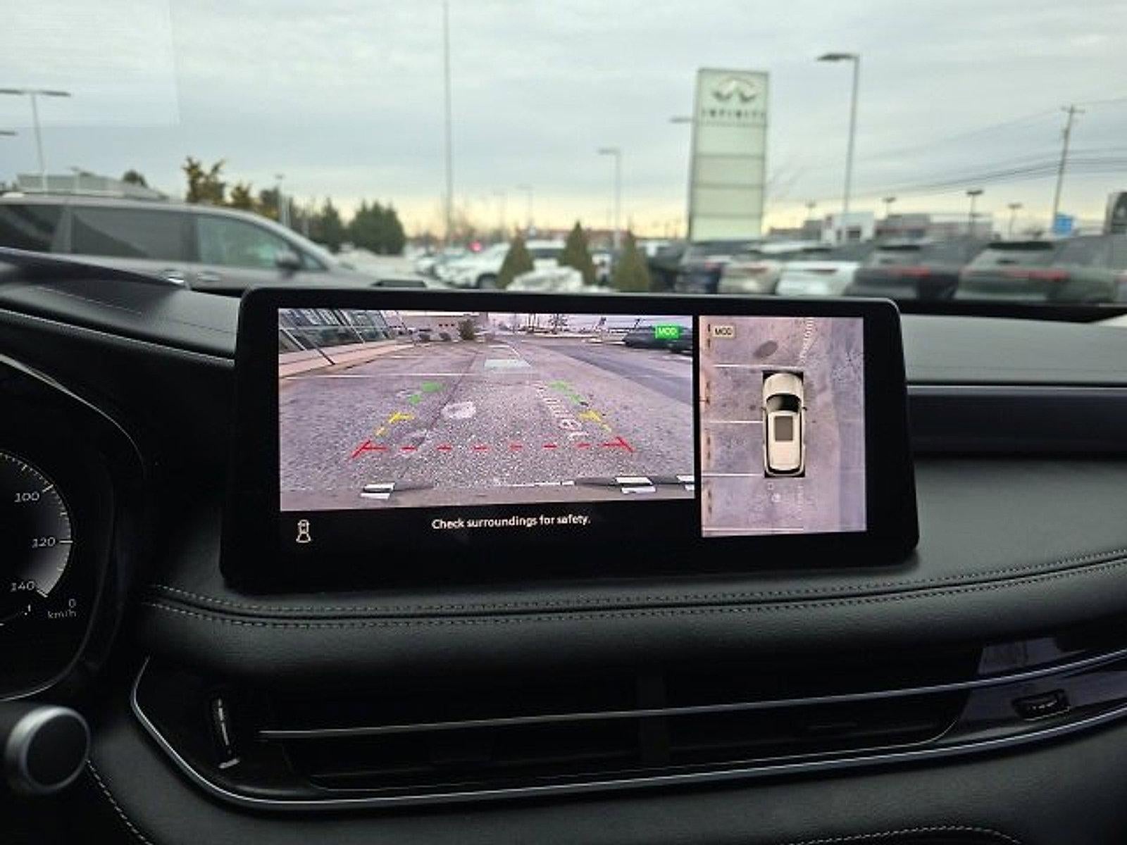 *Backup Camera*, *Bluetooth® Hands-Free Calling*, *Built-in USB ports*, *Remote Engine Start*, *All Wheel Drive*, *Leather Seats*, *Heated Seats*, *Heated Steering Wheel*, *Sunroof/Moonroof*, *Push Button Start*, *Navigation / GPS*, *INFINITI InTouch Navigation *, *Alloy Wheels*, *XM Satellite Radio*, *Apple Car Play*, *Android Auto*, *Forward Emergency Braking*, *Available Built-In 4G LTE Wi-Fi*, *Adaptive Cruise Control*, *Multizone Climate Systems*, *Steering Wheel-Mounted Controls*, *Intelligent Forward Collision Warning*, *Lane Keep Assist with Lane Departure Warning*, *Touch-Screen Display*, QX60 LUXE, 3.5L V6, 3rd row seats: bench, 4-Wheel Disc Brakes, 9 Speakers, ABS brakes, Anti-whiplash front head restraints, Auto High-beam Headlights, Auto-dimming Rear-View mirror, Automatic temperature control, Cargo Package, Climate-Controlled Front Bucket Seats, Dual front impact airbags, Dual front side impact airbags, Emergency communication system, First Aid Kit, Front dual zone A/C, Garage door transmitter: HomeLink, Heated door mirrors, Heated front seats, Heated steering wheel, Leather-Appointed Seating Surfaces, Memory seat, Navigation system: INFINITI InTouch Navigation, Power driver seat, Power Liftgate, Power moonroof, Power passenger seat, Rain sensing wipers, Remote keyless entry, Ventilated front seats, Wheels: 20" x 8J Sporty Machined Aluminum Alloy.