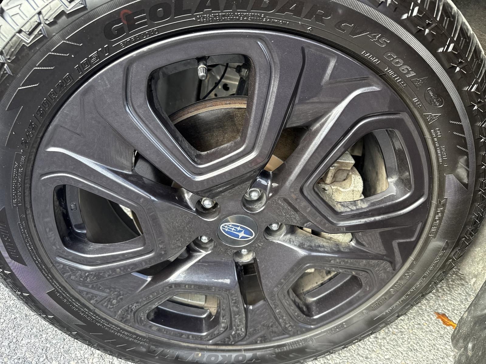 - Wheels: 20" x 7.5 J Aluminum Alloy w/Black Finish -inc: wheel center cap w/Subaru 6 star logo