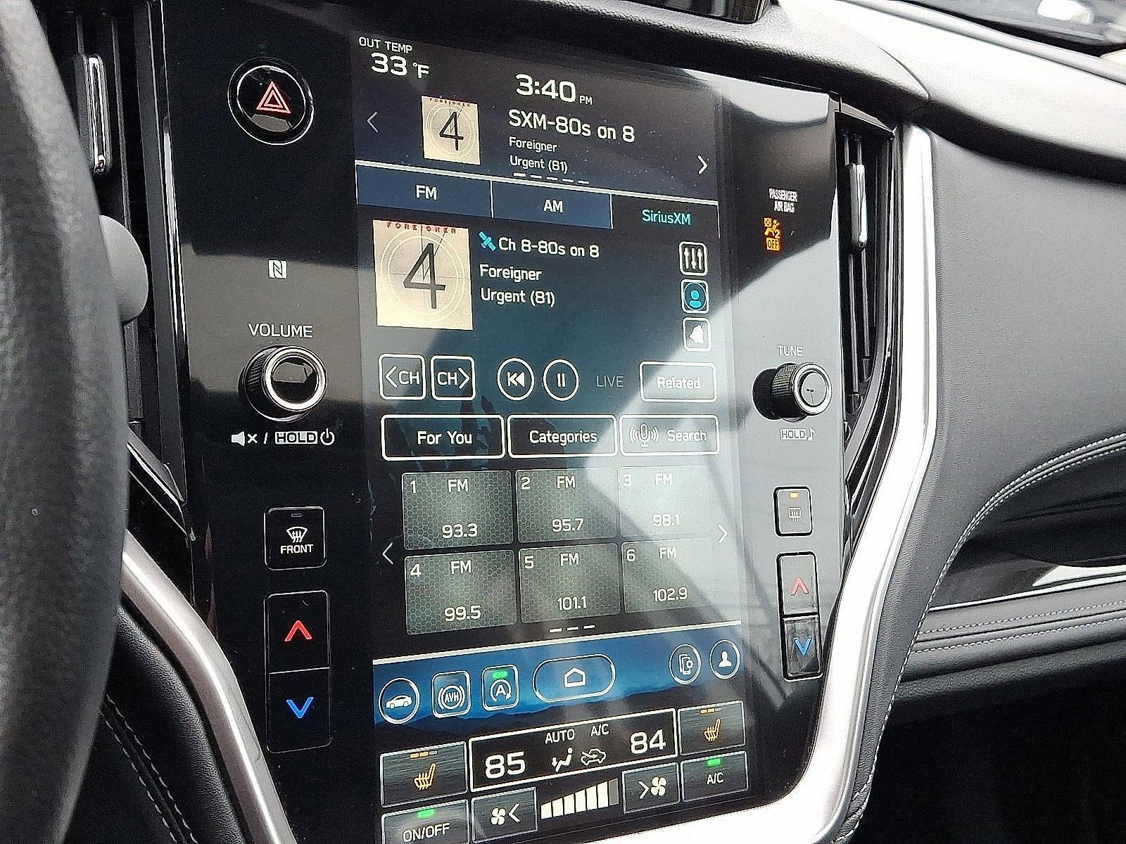 - Radio: Subaru STARLINK 11.6" Multimedia Plus Sys -inc: AM/FM stereo, HD Radio, valet mode, multi-touch gesture high resolution display screen, voice activated controls, Bluetooth® audio streaming and hands-free phone connectivity w/SMS text messaging (refer to subaru.com for cell phone compatibility), Near Field Communication (NFC), iPod control capability, SiriusXM All Access radio (4 months free trial/subscription required after), SiriusXM Travel Link (4 months free trial/subscription required after), smartphone integration: Android Auto and CarPlay w/full screen view and wireless connection and STARLINK cloud applications (refer to subaru.com for app availability), USB and Over The Air (OTA) audio system update, 576 watt harman/kardon surround sound system w/12 speakers, illuminated 3.5mm auxiliary input jack and illuminated USB-A and USB-C input/charge ports